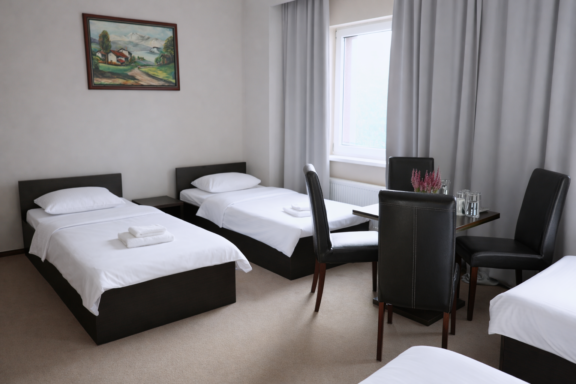 Przytulny i funkcjonalny pokój idealny dla osób podróżujących samotnie. Wygodne łóżko, nowoczesna łazienka, klimatyzacja i szybki dostęp do Internetu gwarantują komfortowy nocleg zarówno podczas krótkiej wizyty, jak i dłuższego pobytu w okolicach Płocka. To świetna opcja dla Gości ceniących spokój i prywatną przestrzeń.